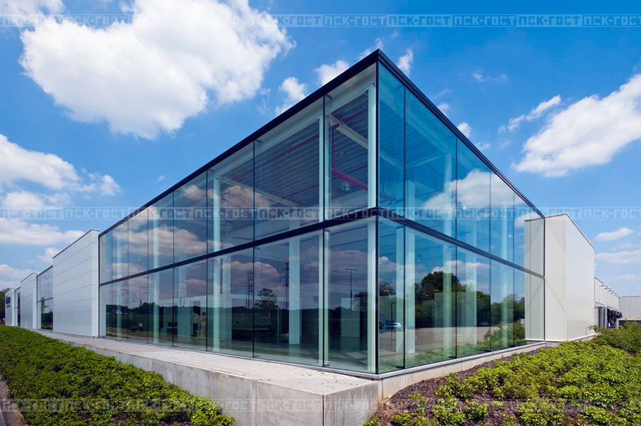 - Бескаркасные фасады — светопрозрачные элементы крепятся при помощи кронштейнов непосредственно к строительным конструкциям здания, что минимизирует количество используемых материалов.